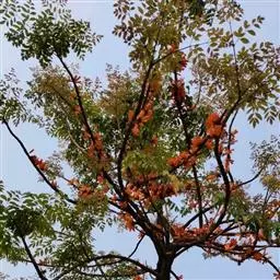 园林作用:树形十分优美,整株成塔形或伞形,叶形优雅,四季葱翠美观,花色艳丽,花量丰富,适合行道树、庭院树等。春夏开花,花开满树,色彩鲜红,是一种相当好的观赏树土木种。