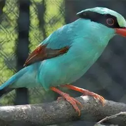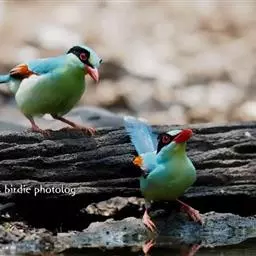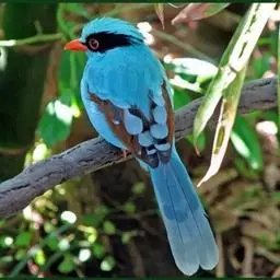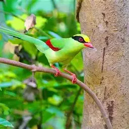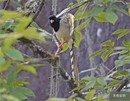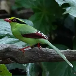 蓝绿鹊:中型鸟类,共有5个亚种。体长36-38厘米。尾长,嘴、脚红色。通体羽色主要为草绿色,…