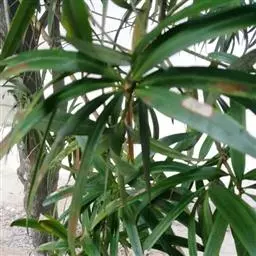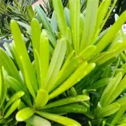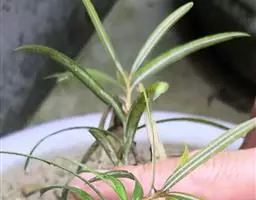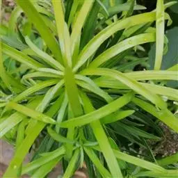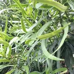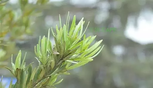 叶互生,螺旋状排列(形似莲台),先端尖突单叶,叶形为线形或狭披针形,叶基锐形,叶端渐尖形或圆形,叶缘全缘(形似金刚杵)、不规则,边缘略反卷,主脉明显,叶上下表面光滑,革质。