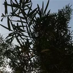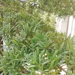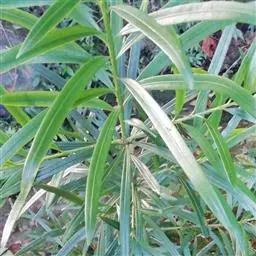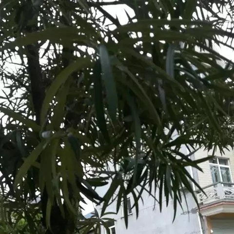 灌木,高1-3米;小枝较粗。叶密生或疏生,窄矩圆形或矩圆状条形,稀椭圆状披针形,质地厚、革质,长5-8厘米,宽9-13毫米,先端钝或微圆,稀尖,基部窄,上面深绿色,中脉隆起,下面微具白粉,呈灰绿色,中脉微隆起或平,叶柄短,长约2毫米。