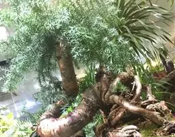 罗汉松为乔木,终年常绿,风姿朴雅,植株高可达 18 公尺,但亦可修剪使保持低矮,树皮充满皱褶。