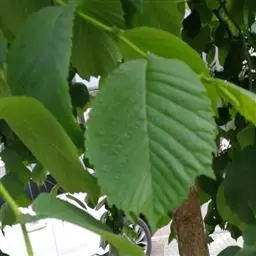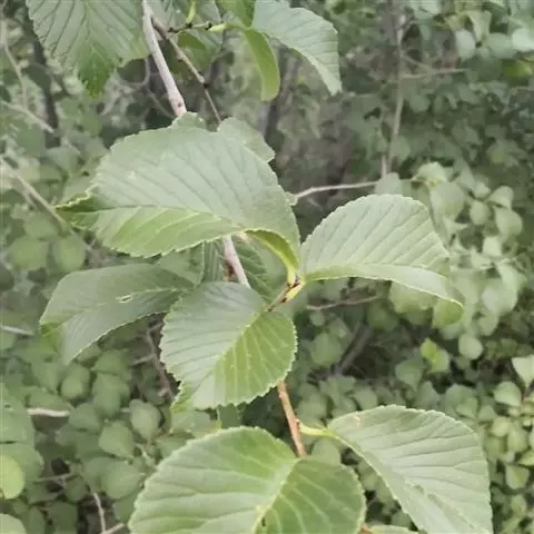 叶椭圆状卵形、长卵形、椭圆状披针形或卵状披针形,长2-8厘米,宽1.2-3.5厘米,先端渐尖或长渐尖,基部偏斜或近对称,一侧楔形至圆,另一侧圆至半心脏形,叶面平滑无毛,叶背幼时有短柔毛,后变无毛或部分脉腋有簇生毛,边缘具重锯齿或单锯齿,侧脉每边9-16条,叶柄长4-10毫米,通常仅上面有短柔毛。