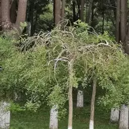 龙爪榆 在园林美化中要想取得令人满意的垂龙爪榆形,必须要对树形进行合理的修剪,垂榆一般都要求修整成伞状。枝接成活当年,在同一平行面上从不一样方向选留3-5个主枝,在新梢尚未木质化时,向外水平捆绑,新梢长到80-100厘米时施行掐心,促发新梢。寒冬修剪,主枝基部粗2厘米以上的,可保存80厘米短截,2厘米以下者可保存60厘米短截。第2年每一主枝上选留2-3个延长枝向外延伸成长,可重新梢弯处截去,增进新梢成长,剪口在枝子打弯向下3-5厘米处,留背上枝。剪口平而光滑,向下。侧枝依照“留优去劣,去密留稀,散布平均,思索问题距离”的原则修剪。剪口不可以太靠下,免得形成窄小树干上部。剪口靠上容易形成开阔的伞形树干上部。同时要趁早剪去内膛的下垂及凌驾伞顶的枝子,这样通过3-4年培育,龙爪榆便可以出圃了。