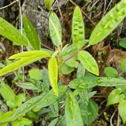 叶双生,大小不相等,椭圆状披针形,长2-5厘米或稍长,宽1-1.5厘米或稍宽,先端钝或短尖,基部楔形下延成短柄,叶面无毛,叶下面沿脉常有树枝状簇绒毛,边全缘或略作波状,中脉在下面凸出,侧脉每边4-7条,在下面明显;叶柄长约2-5毫米,幼时被树枝状簇绒毛,后逐渐脱落。
