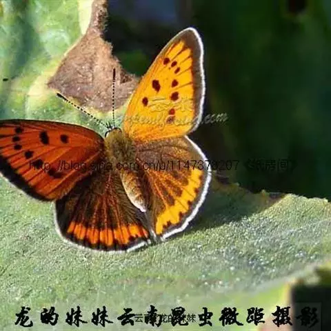 橙灰蝶Lycaena dispar Hauorth,鳞翅目、灰蝶科。这类蝴蝶雌雄异型,雄蝶前翅翅面…