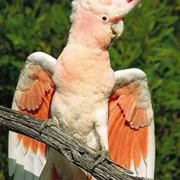 米切氏凤头鹦鹉 米切氏凤头鹦鹉体长34-35厘米,翼展35厘米 ,体重360-480克,寿命70年。有2种亚种,外表大致相同,但一般而言米切氏凤头鹦鹉要比马修氏凤头鹦鹉漂亮, 但后者较少且较昂贵,米切氏凤头鹦鹉的冠羽红黄相间,色泽分明显眼且美丽,米切氏凤头鹦鹉的冠羽则较呈暗红色,而黄色的羽毛非常稀疏或颜色很淡,较无层次分明的美丽羽色。
