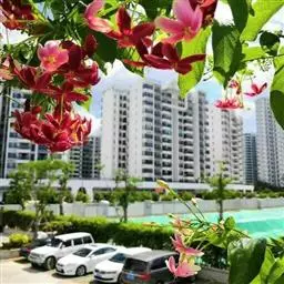 风车子,别名:华风车子、使君子藤,拉丁文名:Combretum alfredii Hance. 使君子科、风车子属多枝直立或攀援状灌木,高约5米;树皮浅灰色,幼嫩部分具鳞片;小枝近方形、灰褐色,有纵槽,密被棕黄色的绒毛和有橙黄色的鳞片,老枝无毛。叶对生或近对生,叶片长椭圆形至阔披针形,稀为椭圆状倒卵形或卵形,先端渐尖,基部楔尖,稀钝圆,全缘,两面无毛而稍粗糙,甚少在背面脉上有粗毛,在放大镜下密被白色、圆形、凸起的小斑点,背面具有黄褐色或橙黄色的鳞片。花期5-8月,果期9月开始。