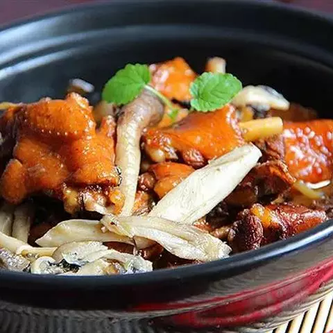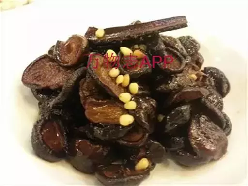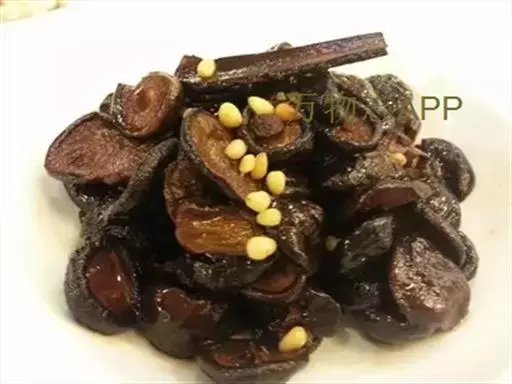 3.锅留余油,下甜面酱略微煸炒,放白糖,酱油,盐,投入香菇不断翻炒,再加适量清水,用大火烧开,改用中火烧透,下味精,再下松仁翻炒, 收干卤汁,放香油,起锅装盘,冷却后食用。