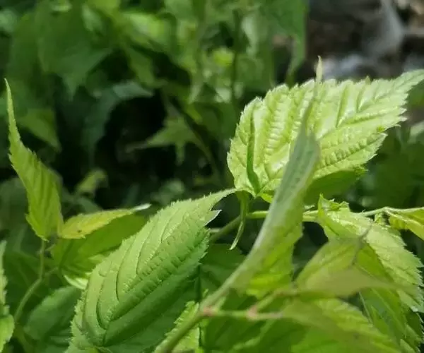 叶互生,三角状卵形或卵圆形,顶端长渐尖,基部圆形、截形或微心形,边缘有尖锐重锯齿,两面绿色,上面无毛或有稀疏柔毛,下面沿脉或脉腋有柔毛;叶柄长5-10毫米,无毛;托叶膜质,带状披针形,有缘毛,早落。