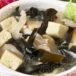 原料:南豆腐200克,马蹄50克,精盐5克,味精5克·,花椒1克,面粉50克,花生油1500克 (约耗80克)。