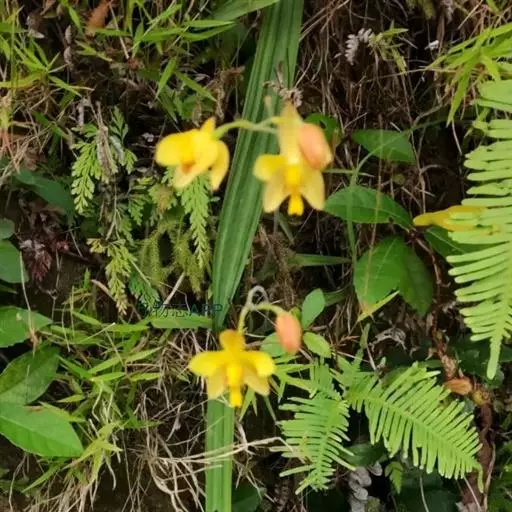 苞舌兰(学名:Spathoglottis pubescens Lindl.):假鳞茎扁球形,通常粗1-2.5厘米,被革质鳞片状鞘,顶生1-3枚叶。叶带状或狭披针形,两面无毛。花葶纤细或粗壮,长达50厘米,密布柔毛,下部被数枚紧抱于花序柄的筒状鞘;总状花序长2-9厘米,疏生2-8朵花;花黄色;萼片椭圆形,具7条脉,背面被柔毛;花瓣宽长圆形,与萼片等长,宽9-10毫米,先端钝,具5-6条主脉,外侧的主脉分枝,两面无毛;唇瓣约等长于花瓣,3裂。花期7-10月。