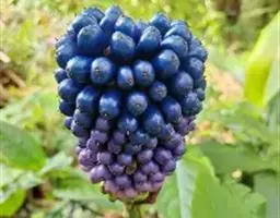 花序顶生和腋生。花序柄圆柱形,长4-5厘米,顶部粗达1厘米。佛焰苞绿色至淡黄色,卵形,渐尖,长6-9厘米,蕾时席卷,花时脱落。肉穗花序圆柱形,向上略狭,顶钝,长5-8厘米,粗1.5-3厘米,粉绿色或淡黄色。子房顶部近六边形,截平,长约4毫米,宽2毫米,柱头黑色,近头状,略凸起。浆果黄绿色。花期4-8月,果翌年成熟。