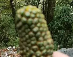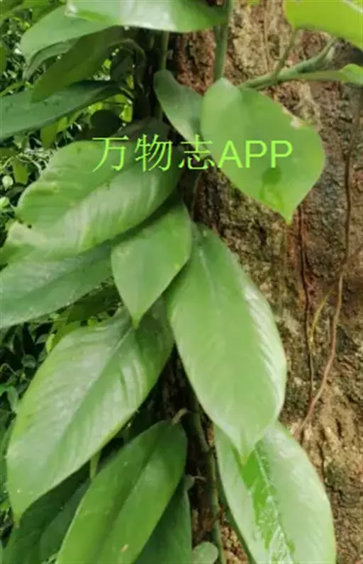 狮子尾(学名:Rhaphidophora hongkongensis Schott),附生藤本,匍匐于地面、石上或攀援于树上。茎稍肉质,粗壮,圆柱形。分枝常披散。幼株茎纤细,肉质,绿色。叶柄腹面具槽,两侧叶鞘达关节;叶片纸质或亚革质。幼株叶片斜椭圆形,先端锐尖,基部一侧狭楔形,另一侧圆形。花序顶生和腋生,花序柄圆柱形。肉穗花序圆柱形,向上略狭。子房顶部近六边形,截平,柱头黑色,近头状,略凸起。浆果黄绿色。花期4-8月,果翌年成熟。