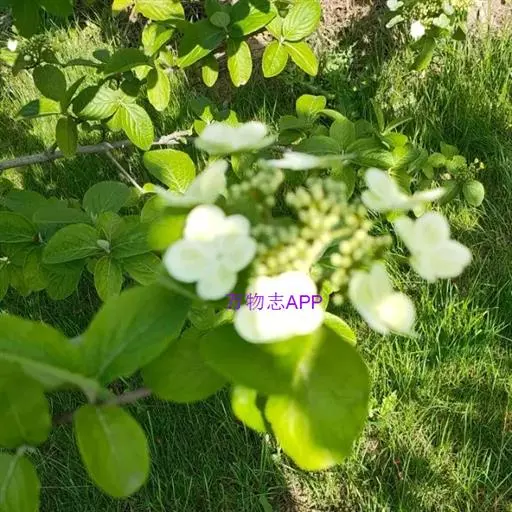 绣球荚蒾(原变型)落叶或半常绿灌木,高达4米;树皮灰褐色或灰白色;芽、幼枝、叶柄及花序呈灰白色或黄白色簇状短毛,后渐变无毛。叶临冬至翌年春季逐渐落尽。纸质,卵形至椭圆形或卵状矩圆形,长5-11厘米,顶端钝或稍尖,基部圆或有时微心形,边缘有小齿,上面初时密被簇状短毛,后仅中脉有毛,下面被簇状短毛,侧脉5-6对,近缘前互相网结,连同中脉上面略凹陷,下面凸起;叶柄长10-15毫米。