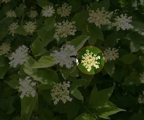 琼花(琼花集)聚八仙(洪武郡志);八仙花(花镜),蝴蝶木(拉汉种子植物名称),扬州琼花(博物)聚伞花序仅周围具大型的不孕花,花冠直径3-4.2厘米,裂片倒卵形或近圆形,顶端常凹缺;可孕花的萼齿卵形,长约1毫米,花冠白色,辐状,直径7-10毫米,裂片宽卵形,长约2.5毫米,筒部长约1.5毫米,雄蕊稍高出花冠,花药近圆形,长约1毫米。