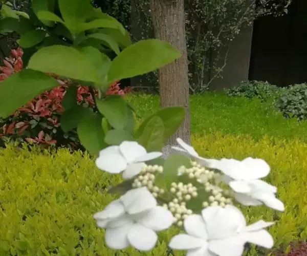 琼花的寿命较长,扬州大明寺内一株清朝康熙年间种植的琼花,已有300多年的历史,如今依然繁茂,风姿如故,风韵仍不减当年。 琼花的美,是一种独具风韵的美。它不以花色鲜艳迷人,不以浓香醉人,每到春夏之交,自然界一片姹紫嫣红,琼花却花开洁白如玉,风姿绰约,格外清秀淡雅;而每当秋风萧瑟,群芳落英缤纷,凋零衰败之际,琼花展示的却是绿叶红果的迷人秋色。其叶、其果,红绿相映,分外鲜艳,经久不凋,给萧瑟的秋色点染了艳丽的色彩和欢快的气氛。琼花枝条广展,树冠呈球形,树姿优美,树形潇洒别致。