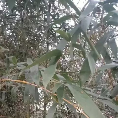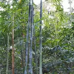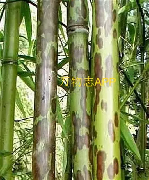 斑竹 乔木或灌木状竹类。 竿高可达20米,粗达15厘米,幼竿无毛,无白粉或被不易察觉的白粉,偶可在节下方具稍明显的白粉环;节间长达40厘米,壁厚约5毫米;竿环稍高于箨环。