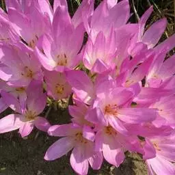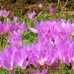 秋水仙(学名:Colchicum autumnale L.)是百合科秋水仙属植物,多年生草本。地下部分也具有圆球形的鳞茎。它的这种鳞茎,有的直径可长至6厘米以上。球根花卉,球茎卵形,外皮黑褐色。叶披针形,暗绿色,长约30厘米。每开花1-4朵,花纺形,开放时漏斗形。蒴果,种子多数,呈不规则的球形,褐色。8-10月开花,翌年春天长叶。 [1-2]