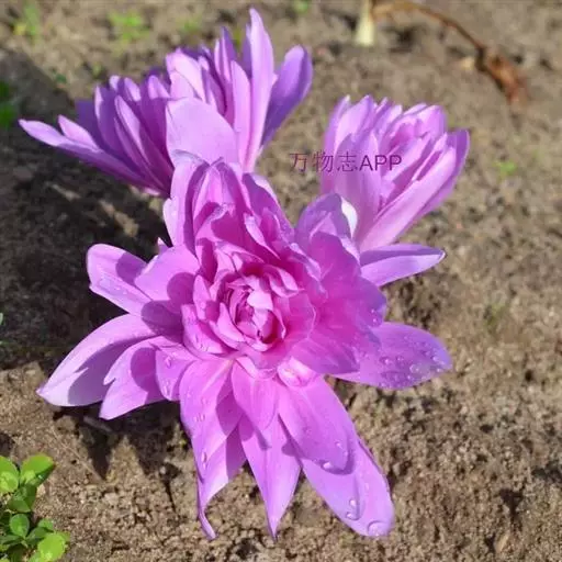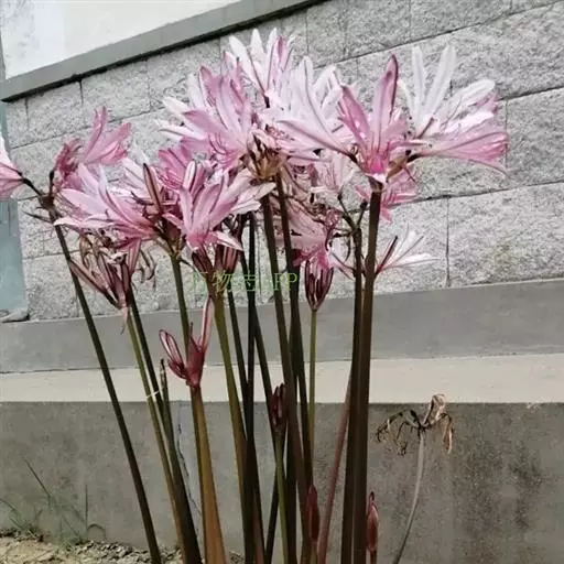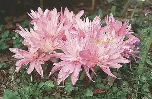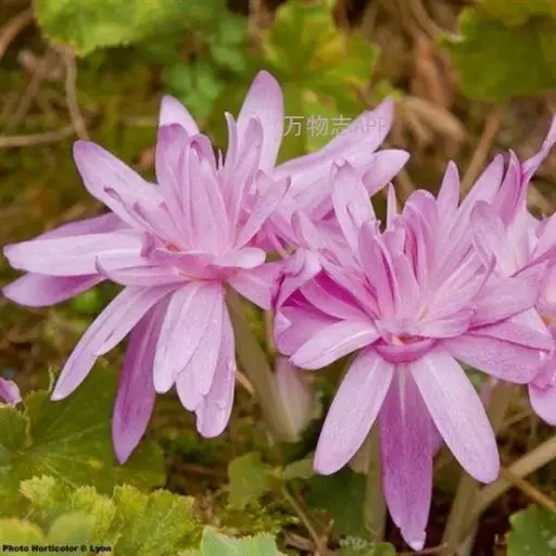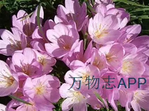 多年生草本植物。地下部分也具有圆球形的鳞茎。它的这种鳞茎,有的直径可长至6厘米以上。 球根花卉,球茎卵形,外皮黑褐色。茎极短,大部理于地下。叶披针形,暗绿色,长约30厘米。每开花1-4朵,花纺形,开放时漏斗形,淡粉红色(或紫红色),直径约7-8厘米:雄蕊比雌蕊短,花药黄色。蒴果,种子多数,呈不规则的球形,褐色。8-10月开花,翌年春天长叶。