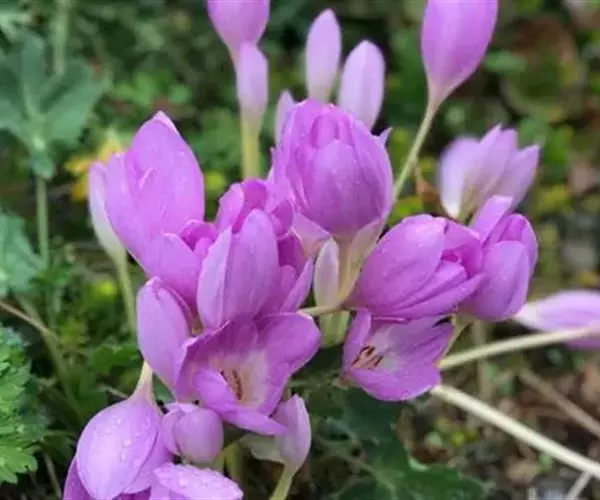 观赏:秋水仙叶片线形,花茎婷婷玉立,花茎和花朵,多为粉红至紫红色,宜作盆栽。