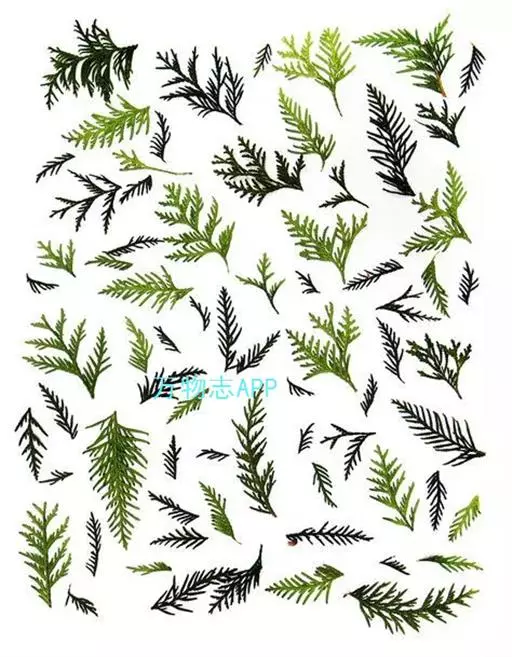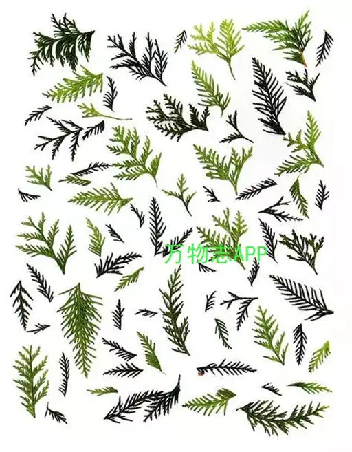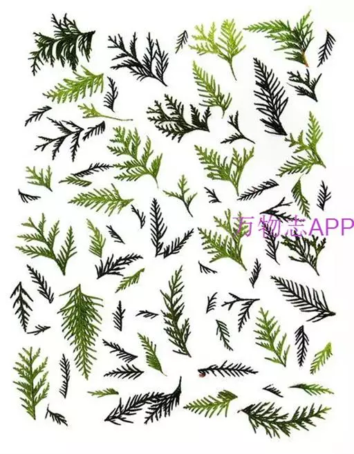叶异型,螺旋状排列,下延生长,两种类型之叶往往生于同一树上;老枝及果枝上之叶呈鳞形或钻形,覆瓦状排列,形小,长2-3mm,先端向上弯曲,有急尖的长尖头;生于幼树、萌生枝或小枝顶端之叶呈钻状条形,质软,排列成两列,近扁平,长6-12mm,宽约1.2mm,两面有气孔线,上部微渐窄,先端向上微弯,有微急尖的长尖头。