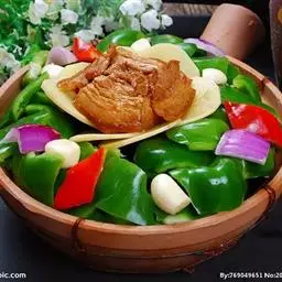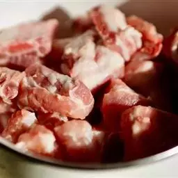 沙茶酱蒸牛仔骨 原料:鸭1只(1250克左右),沙茶酱125克、葱段15克、水发香菇25克、马铃薯12个、姜片5克、蒜泥25克、辣椒粉10克、白酒25克、白糖15克、酱油50克、味精10克、湿淀粉50克、猪骨汤750克、熟鸡油10克、熟猪油750克(实耗100克)。