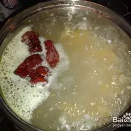 1 将鸭宰杀褪毛,去内脏洗净,放入沸水锅中稍氽取出,盛入沙锅,加清水1000克,酒10克、葱段、姜片,旺火煮沸,十五分钟后捞出。