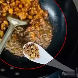 3.另用净锅放油,先将香菜籽、五香粉下锅略炒,加入芝麻酱、虾米末、花生末、芥末粉、沙姜粉炒匀,再加入蒜油、葱油、辣油、精盐、白糖、炒匀,随后将香木草碾成粉末也放入同炒。用文火炒半小时左右,见锅内不泛泡时,即可离火待其自然冷却后装入坛内,可久藏1~2年不变质。