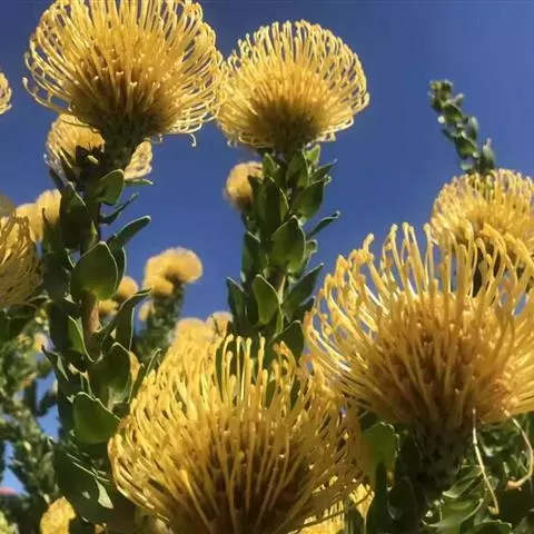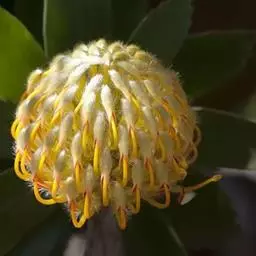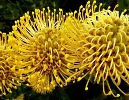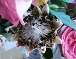 帝王花,山龙眼科帝王花属多年生常绿灌木植;茎干粗壮,叶色翠绿光亮;花朵呈圆球状;其苞片有的完全打开,…