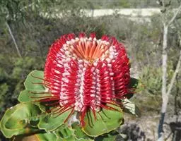 帝王花,山龙眼科帝王花属多年生常绿灌木植;茎干粗壮,叶色翠绿光亮;花朵呈圆球状;其苞片有的完全打开,…