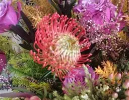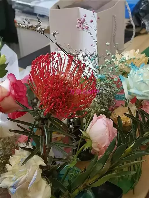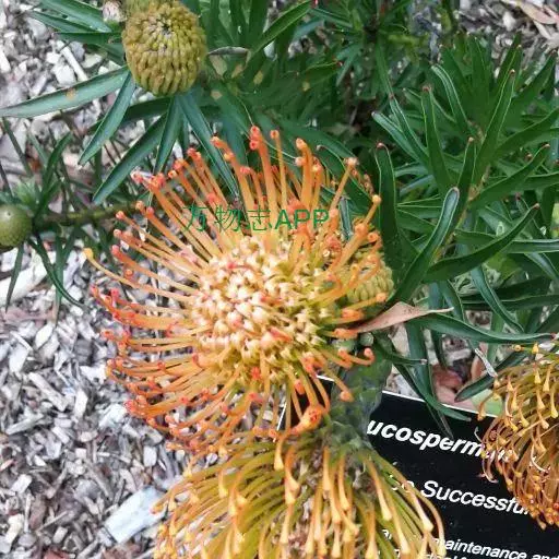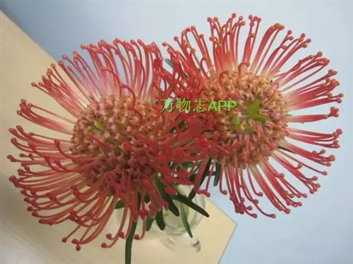 针垫花(Leucospermum sp.)又名风轮花、针包花、针垫山龙眼等。全属植物约50多种,主要分布在南非和津巴布韦等地。常绿蔓性灌木,少数为小乔木,叶轮生,硬质,多为针状、心脏形或矛尖状,边缘或叶尖有锯齿;花序密集,头状花序,单生或少数聚生;花冠小,针状。从它的植物学特征的描述可以看出这种植物有些古老和原始。如今的针垫花是通过众多的鲜花布景被世界各地的游人认识,从而走出国门,并分布于世界的每一个角落,成为一个非常流行的园艺品种,也被广泛用作鲜切花。