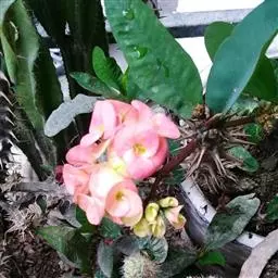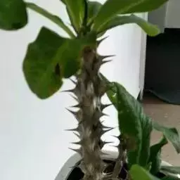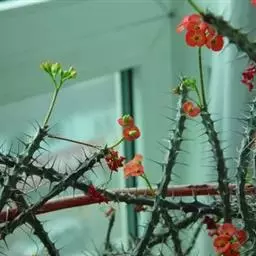 虎刺梅:别称铁海棠,是蔓生灌木植物。茎多分枝,长60-100厘米,直径5-10毫米,具纵棱,密生硬…