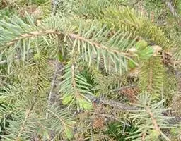 乔木,高达30米,胸径达1米;树皮淡灰色或灰色,裂成薄鳞状块片脱落;大枝平展,树冠尖塔形;侧枝细而下垂,一年生枝淡黄色或淡褐黄色,有毛或无毛,二、三年生枝褐黄色或褐色,渐变成灰色;冬芽常为卵圆形及卵状圆锥形,稀顶芽圆锥形,侧芽卵圆形,芽鳞排列紧密,褐色,先端钝,小枝基部宿存芽鳞紧贴小枝,不向外开展。小枝上面之叶覆瓦状向前伸展,两侧及下面之叶排成两列;条形,扁平,微弯或直,长1-2.2厘米,宽1-1.5毫米,先端尖或微尖,上面有2条白粉气孔带,每带有气孔线5-7条,下面光绿色,无气孔线。