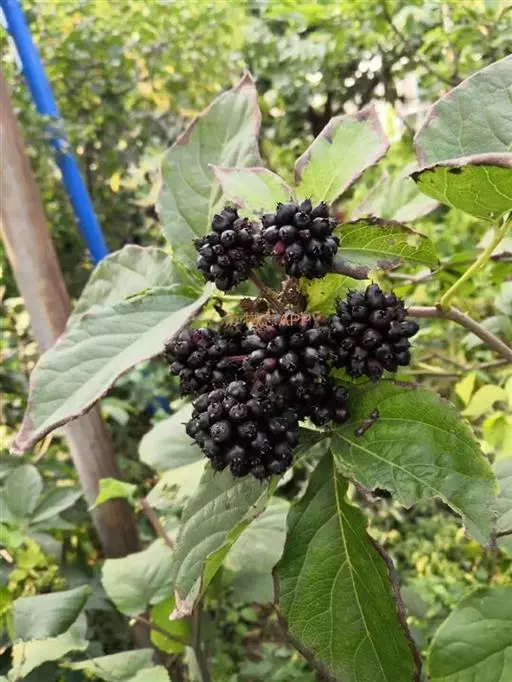 果实采收:一般栽培后的第3年即开始结实。9月下旬至10月上旬浆果完全变为紫褐色,充分成熟时采收。采收时先用手托住果穗,再用剪子在果梗基部剪下,储存于通风阴凉处。
