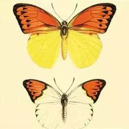 幼虫 幼虫头部淡褐色,腹部淡黄色至绿色,老熟幼虫体长14~19毫米,橘红色。前胸背板淡褐色,上有褐色斑纹,近前缘中央有并列的褐色斑点两颗,两侧各有一条由褐点组成的弧形斑。后缘有两条向前延伸的尖条斑。中、后胸背面各有茸毛片8个,分成二排,前排6个,中间二条较大,后排2个,位于两侧;自三龄以后,毛片周围黑褐色。腹部毛片黄绿色,周围无黑纹,第一至第八节背面各有毛片6个,也分两排,前排4个,后排2个,位于近中间。腹部毛瘤黑色,气门周围亦为黑色。腹足趾钩39个左右,为单行三序环。幼虫一般五龄,少数六龄。预蛹 长约11.5~13.5毫米,淡橙红色,体节膨胀,腹足及尾足收缩。