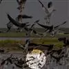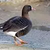 豆雁,雁形目鸭科。成鸟头、颈、背灰褐色,带淡黄色羽缘;尾上覆羽白色,尾羽黑褐色带白端,…