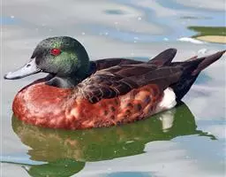 栗树鸭体长37-42厘米,体重400-600克,是中等体型的红褐色鸭。头顶深褐,头及颈皮黄色,…