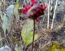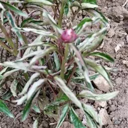 白芍叶霉病主要为害白芍叶片。初生圆形褐色病斑,初生圆形紫褐色病斑,大小6—15mm,后微具浅褐色轮纹,四周暗紫褐色,叶背常生墨绿色绒霉层,后期病斑融合引起叶枯。茎染病生长条形紫褐色病斑。叶柄染病叶柄基部分叉处易拆断。萼片、花瓣染病初生紫红色小点,后边缘焦枯。