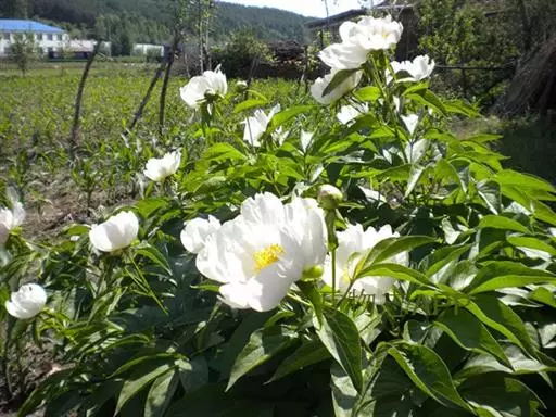 早春松土保墒,出苗后每年中耕除草4次,结合锄草在根部培土,10月下旬,地冻前在离地面7~10厘米处剪去枝叶,根际培土约15厘米,以利越冬。第二年起每年追施肥3次,分别在3月下旬~4月上旬,施稀人粪尿,第二次在4月下旬,每亩施人粪尿500千克,第三次在10~11月间,以圈肥为主,每亩1500-2 000千克。第四年收获前追肥2次,追肥时宜于两侧开穴施下。芍药一般不需灌溉,严重干旱时,宜在傍晚灌1次透水,多雨季节,应及时排灌,每年春季现蕾时要及时将花蕾摘掉