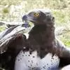 白肩雕:又名御雕,是大型猛禽。体长73-84厘米。体羽黑褐色,头和颈较淡,肩部有明显的白斑,在黑褐…