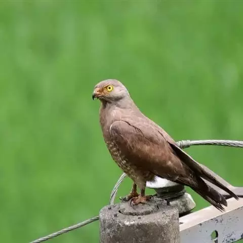 栗翅鹰:是鹰科、鵟属的中型猛禽,体长46-76厘米。全身棕色羽毛,翅膀的上下是栗子色,大腿稍带黑棕色。…