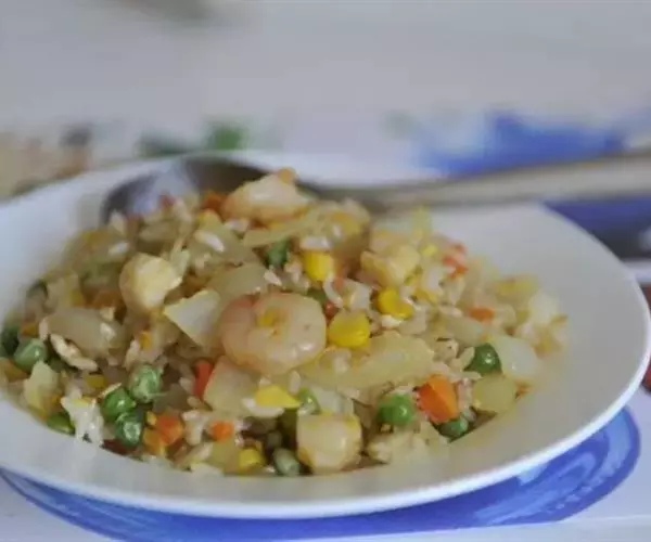 什锦炒饭是一道色香味俱全的名点,以江苏扬州的炒饭最知名。虾仁去泥肠洗净,加料酒、胡椒粉、淀粉上浆。…