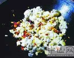菠萝炒饭是将带皮菠萝纵切,用勺子将菠萝肉取出,切成小丁,…