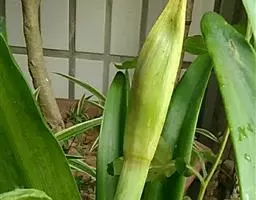 多年生常绿鳞茎类观赏花卉。地下鳞茎长圆球形,鳞茎着生白色肉质根,分枝较多,根系发达鳞茎周围毎年春季都要萌发幼小的侧枝。叶片长宽椭圆形,一般长约30-35厘米,宽为15-18厘米,表面暗绿色,背面绿色,纵向脉纹明显,每个鳞茎有叶片4-5片。栽培一个小鳞茎,大约2-3年才能开花。