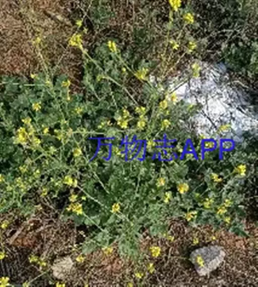 山芥,二年生草本,高25-60厘米,全株无毛。茎直立,下部常带紫色,单一或具少数分枝。基生叶及茎下部叶大头羽状分裂,顶端裂片大,长2-5.5厘米,宽1-3厘米,宽椭圆形或近圆形,顶端钝圆,基部圆形、楔形或心形,边缘呈微波状或具圆齿,侧裂片小,1-5对,具叶柄,基部耳状抱茎;茎上部叶较小,宽披针形或长卵形,边缘具疏齿,无柄,基部耳状抱茎。