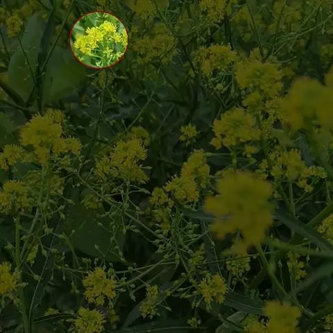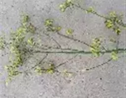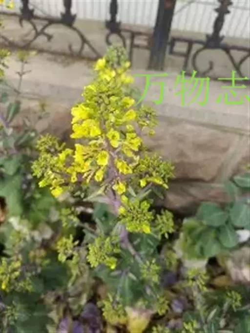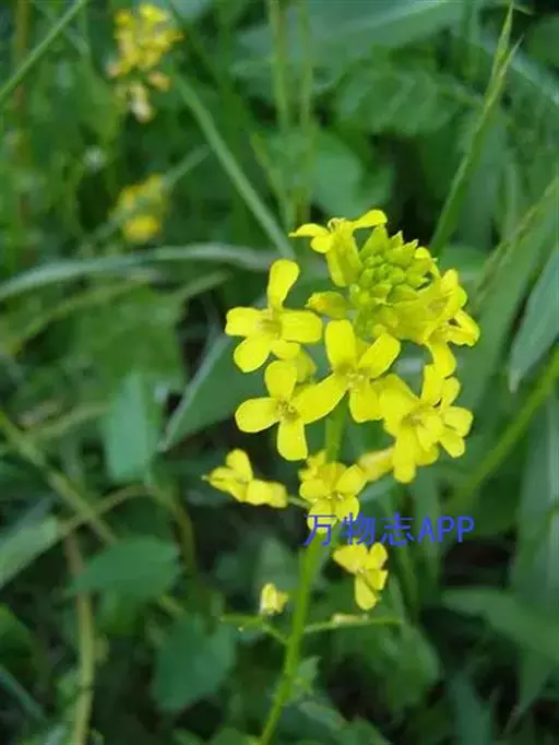 总状花序顶生,初密集,花后延长;萼片椭圆状披针形,内轮2枚顶端隆起成兜状,长2.5-3毫米,宽0.5-1毫米;花瓣黄色,长倒卵形,长3-4.5毫米,宽0.7-1.2毫米,基部具爪。长角果线状四棱形,长2-3.5厘米,紧贴果轴而密集着生,果熟时稍开展,果瓣隆起,中脉显著。种子椭圆形,长约1.5毫米,宽约0.5毫米,深褐色,表面具细网纹;子叶缘倚胚根。花、果期5-8月。