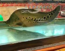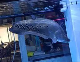 松江鲈,头扁平,向后渐侧扁。头部有棱无棘,前鳃盖骨有4棘,上棘最大,上弯。背鳍连续,有一深凹。口大…