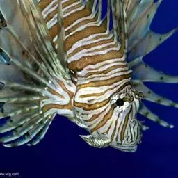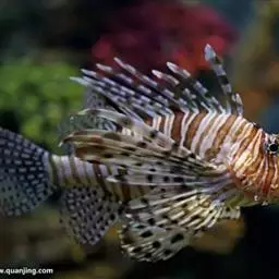 斑鳍蓑鲉是鲉科,蓑鲉属硬骨鱼。体长25-40厘米,体表黄色,布有红色至棕色条纹。背部有毒棘,胸鳍羽…