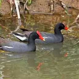 黑水鸡:是鹤形目、秧鸡科的鸟类,共有12个亚种。中型涉禽,体长24-35厘米。嘴长度适中,…