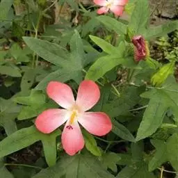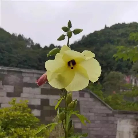 咖啡黄葵 Moench)亦称黄秋葵,是锦葵科一年生草本植物。茎圆柱形,疏生散刺。叶掌状,裂片阔至狭,…